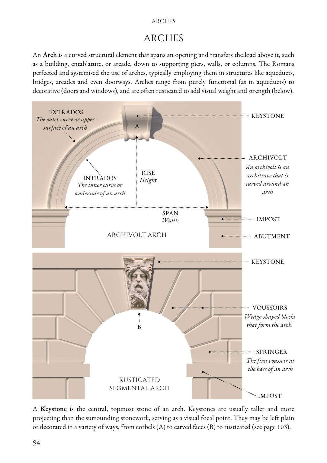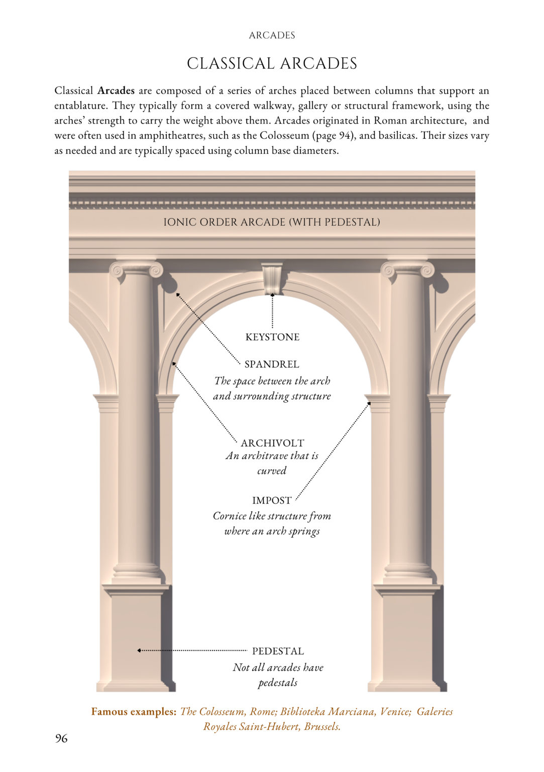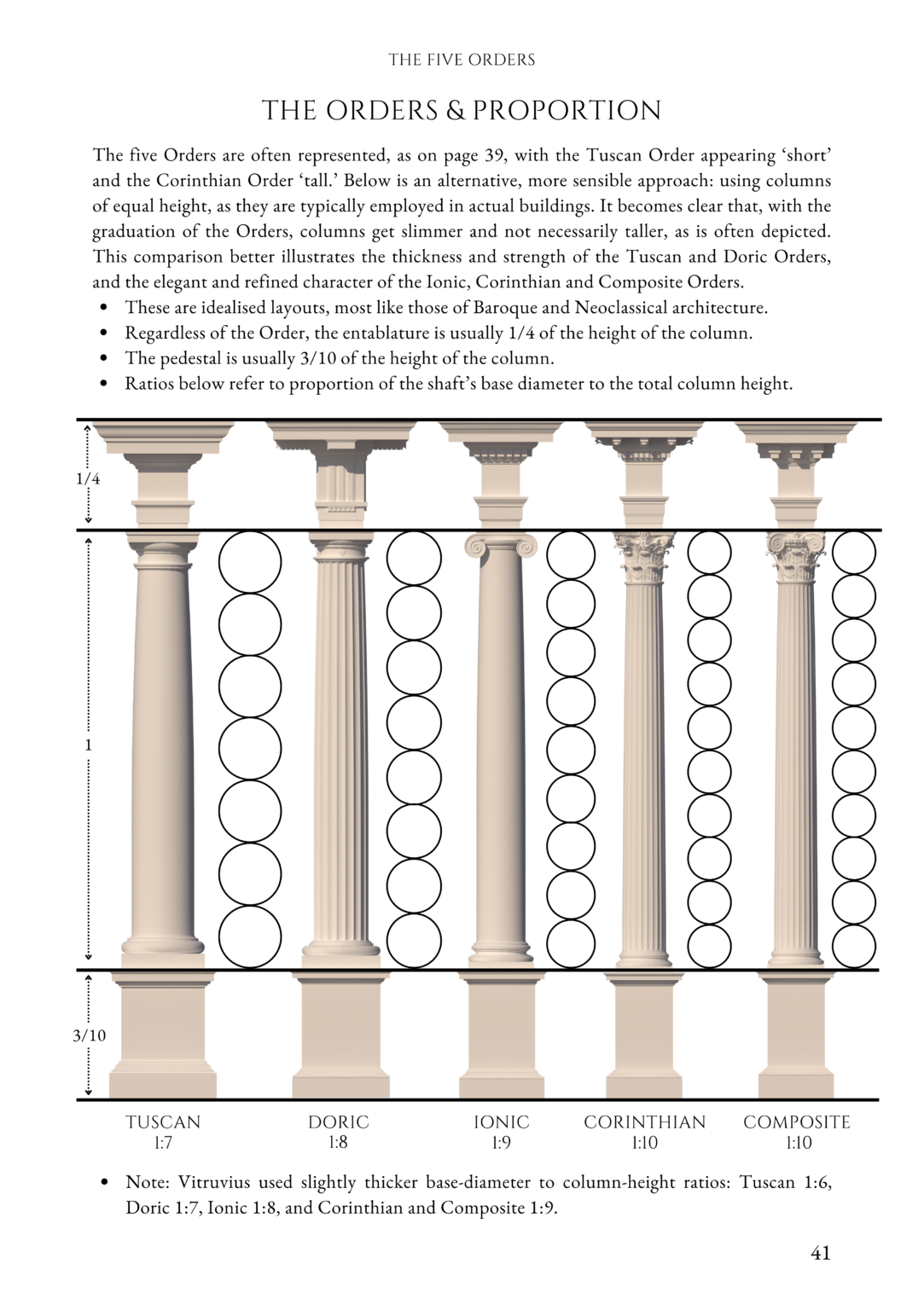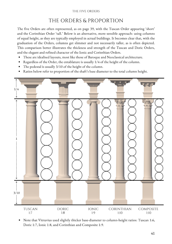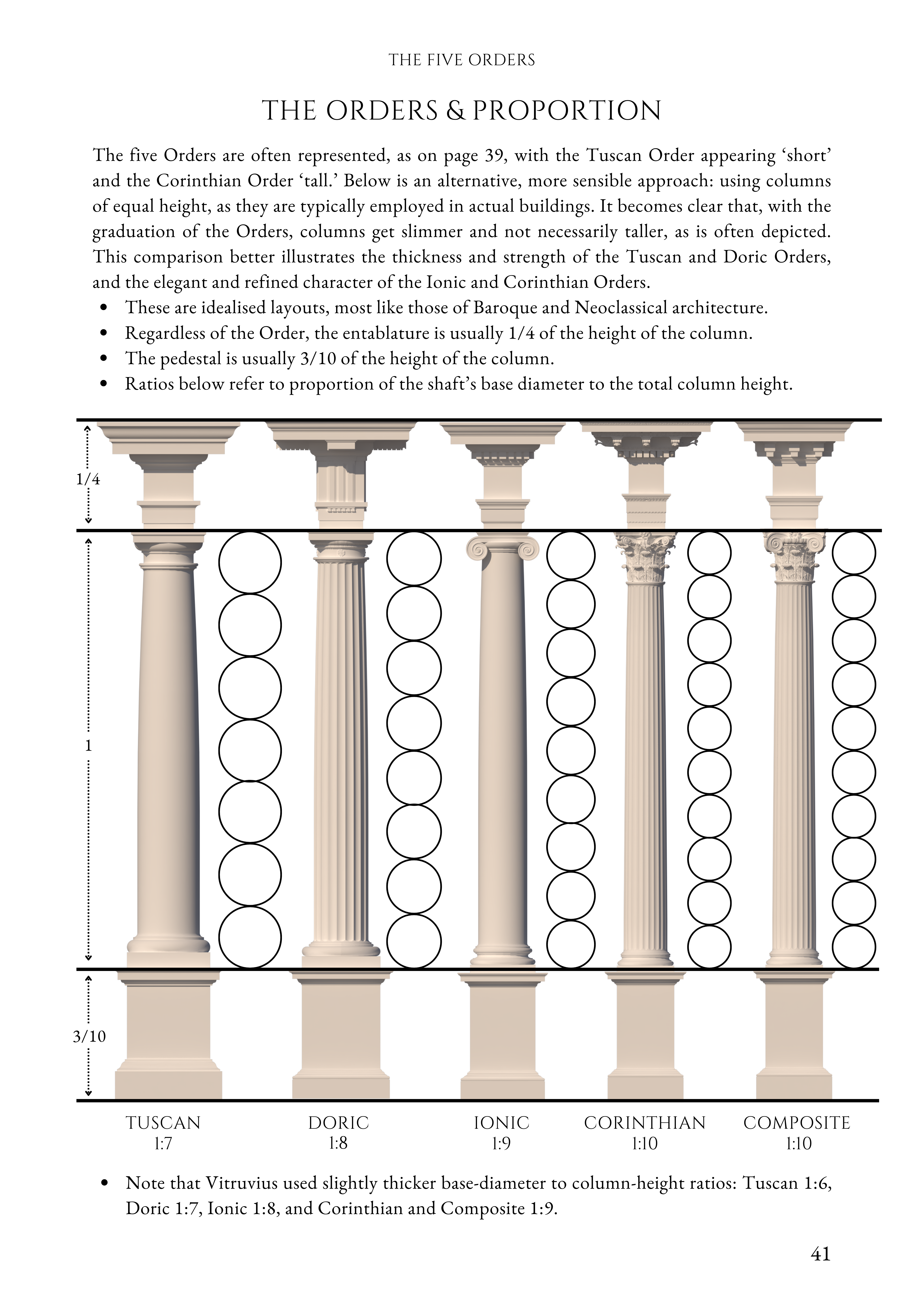 The book introduces the key elements of classical architecture, from overarching design styles like Greek and Neoclassical to the fundamental building blocks of the style. It presents classical construction primarily as a practical design vocabulary, rather than solely for academic study or historical appreciation. The structure is designed for quick understanding, allowing readers to grasp key concepts without unnecessary delay. The book presents over 450 3D renders, drawings, and images of the essential elements of classical architectural design, each paired with concise explanations that clearly convey the purpose and underlying principles of each feature. Below is a brief introduction to the topics covered:
