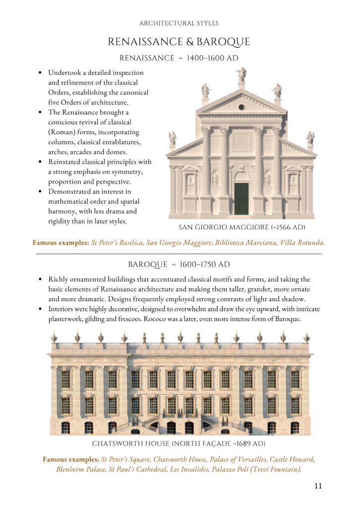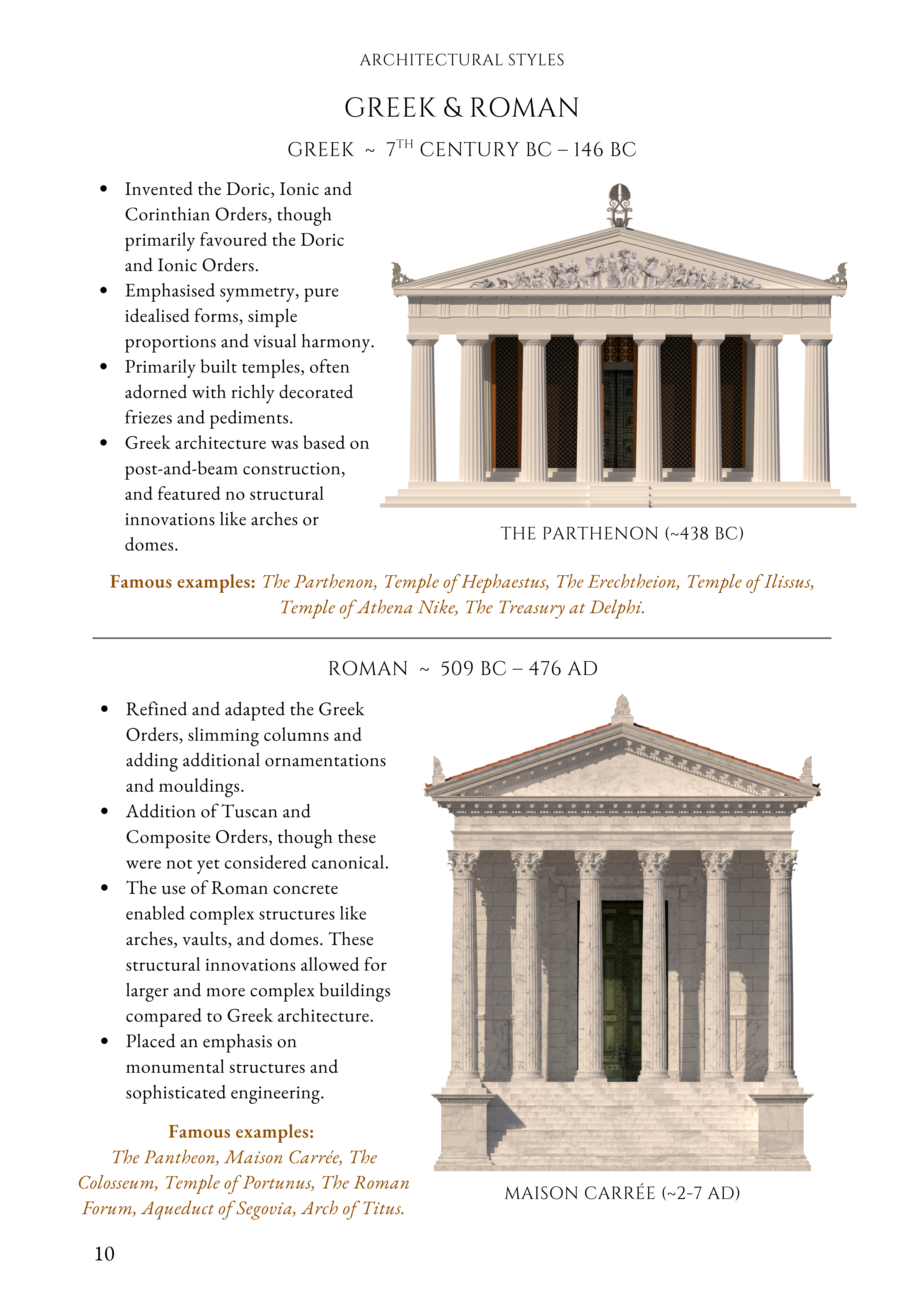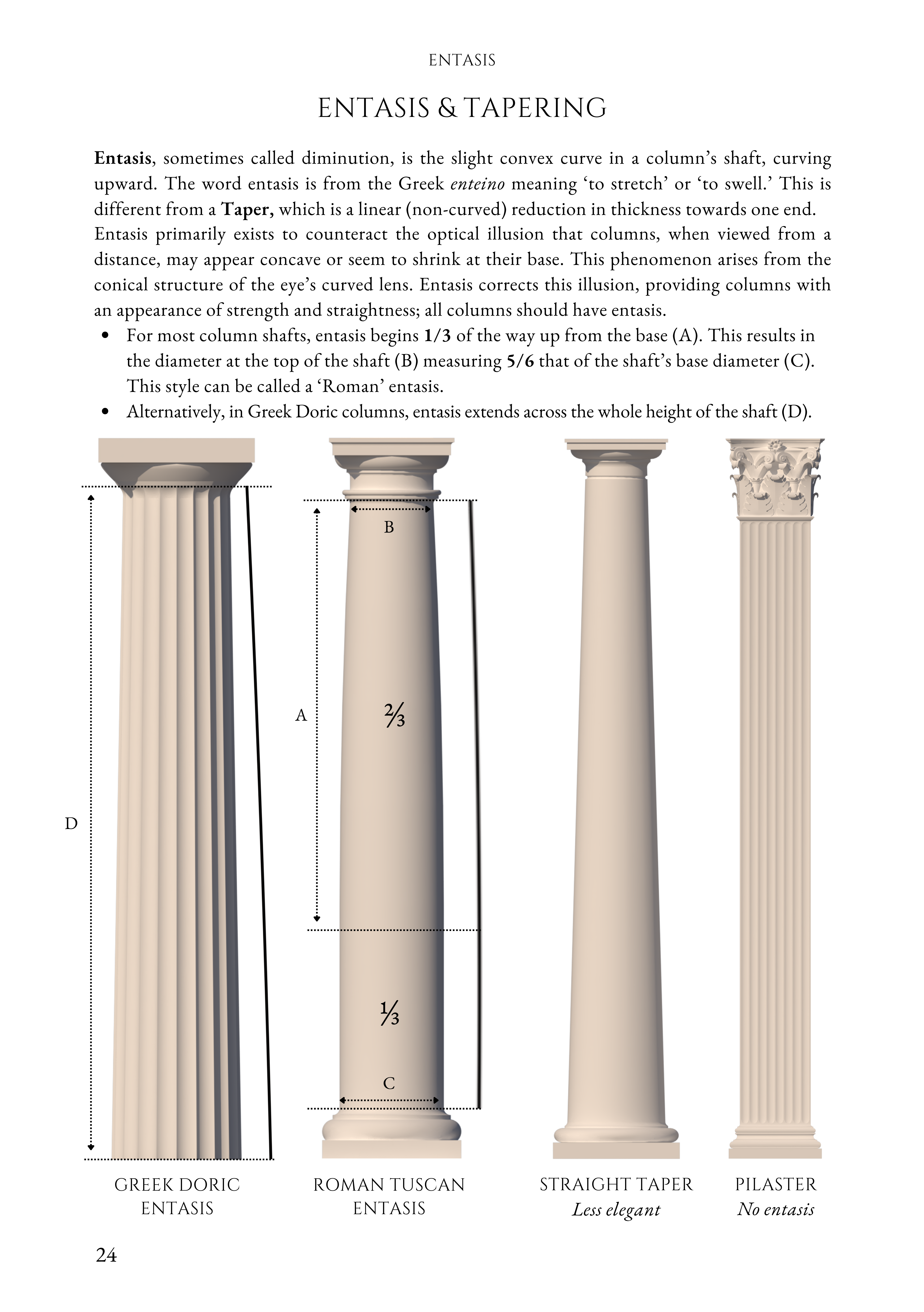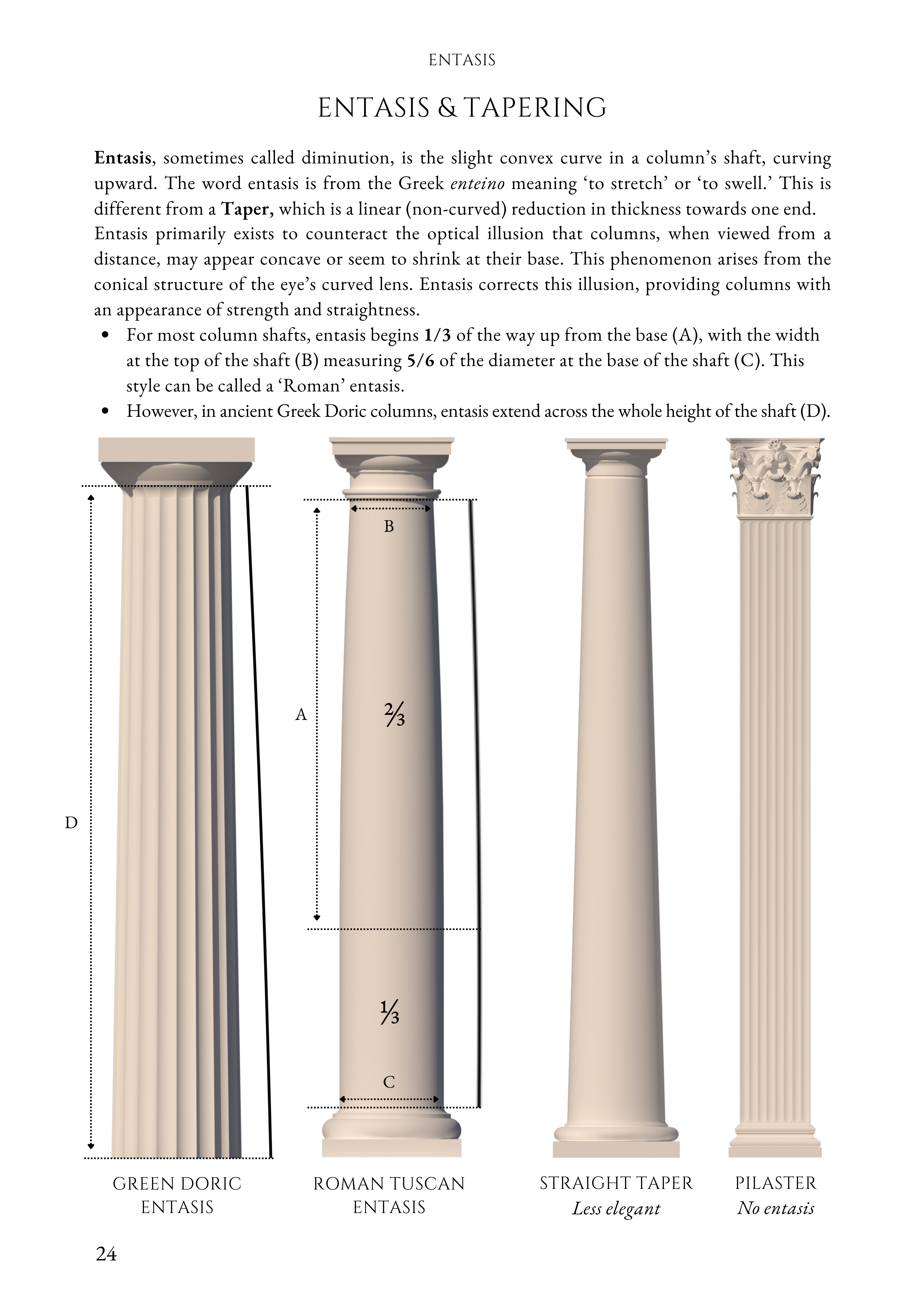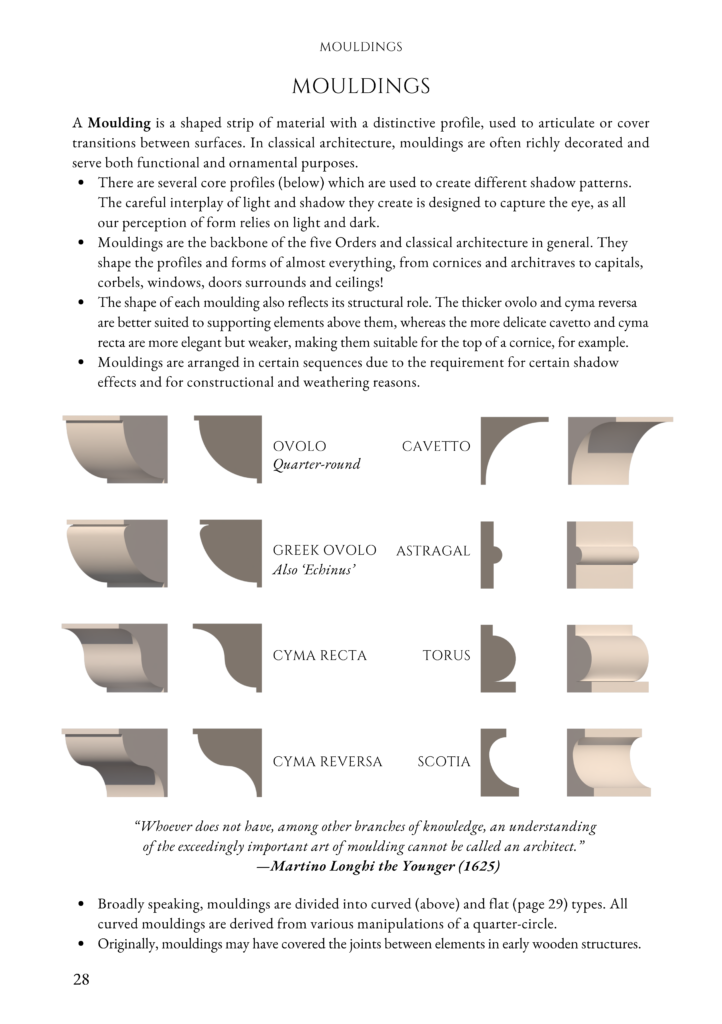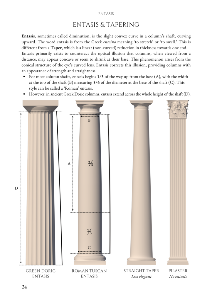 The book introduces the key elements of classical architecture, from overarching design styles like Greek and Neoclassical to the fundamental building blocks of the style. It presents classical construction primarily as a practical design vocabulary, rather than solely for academic study or historical appreciation. The structure is designed for quick understanding, allowing readers to grasp key concepts without unnecessary delay. The book presents over 450 3D renders, drawings, and images of the essential elements of classical architectural design, each paired with concise explanations that clearly convey the purpose and underlying principles of each feature. Below is a brief introduction to the topics covered: