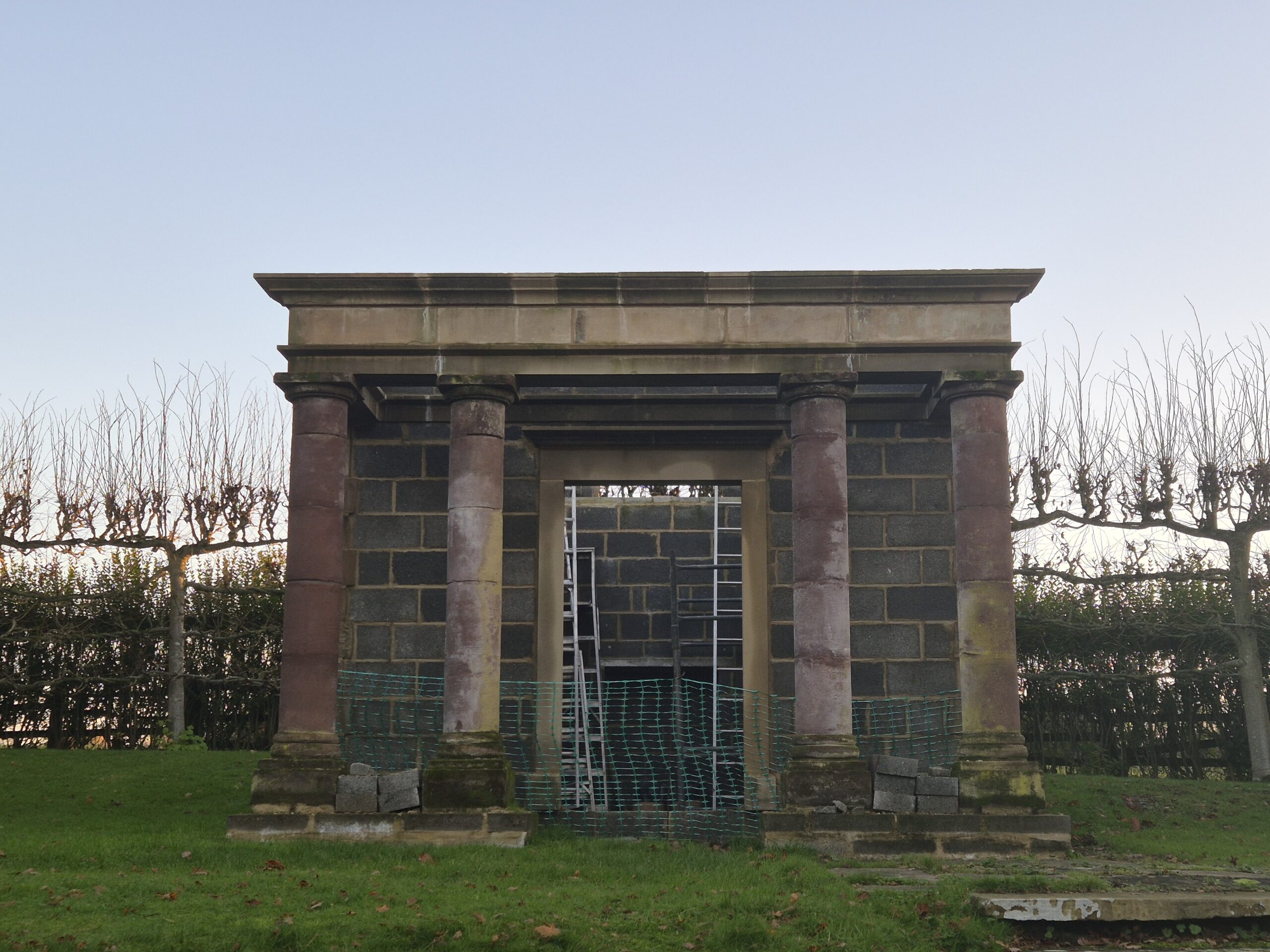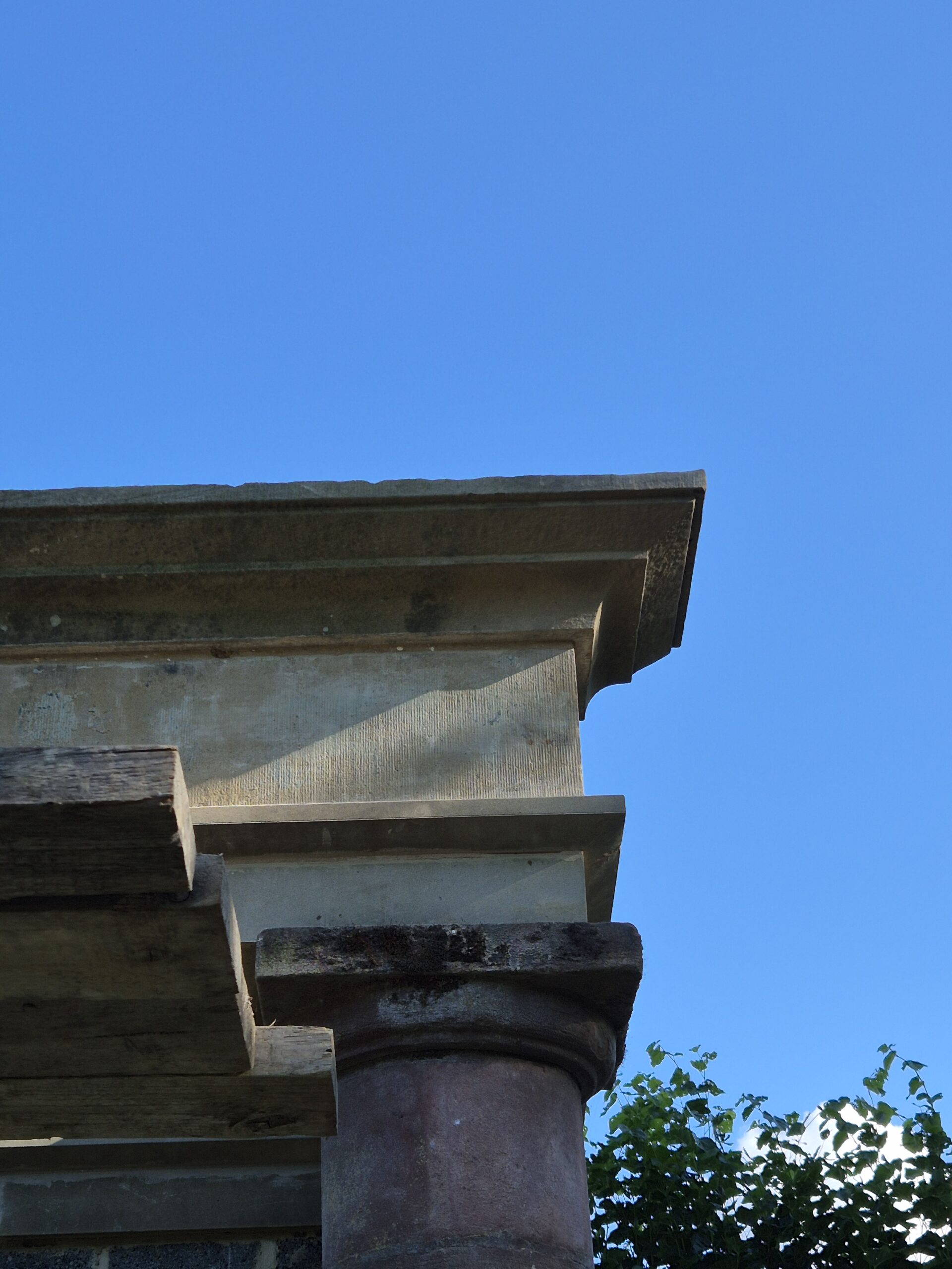 Most of the materials for the exterior are reclaimed to create an authentic historic look. The height and proportions of the reclaimed pillars, the amount of cornice available, and the sizes of the fantastic double doors have in turn informed the height and ratios of the portico. It has been an interesting design process to ensure that the structure is both functional and beautiful, whilst using the materials on hand.
